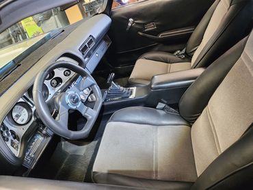 Vehicle interior is 90% brand new with an all new dash pad and lower clip, recovered front and rear seats, custom new AutoMeter gauges and restored factory gauges with new white faces, custom installed new Alpine stereo, Bluetooth, CD AM/FM with 6x9 Kicker speakers on rear deck, Dynamat sound and heat barrier insulation and Hurst shifter for the TH 350 transmission with custom install on refurbished center console.
